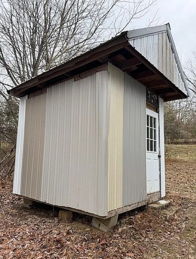 The property includes metal storage buildings, offering plenty of space for tools, equipment, or hobbies.