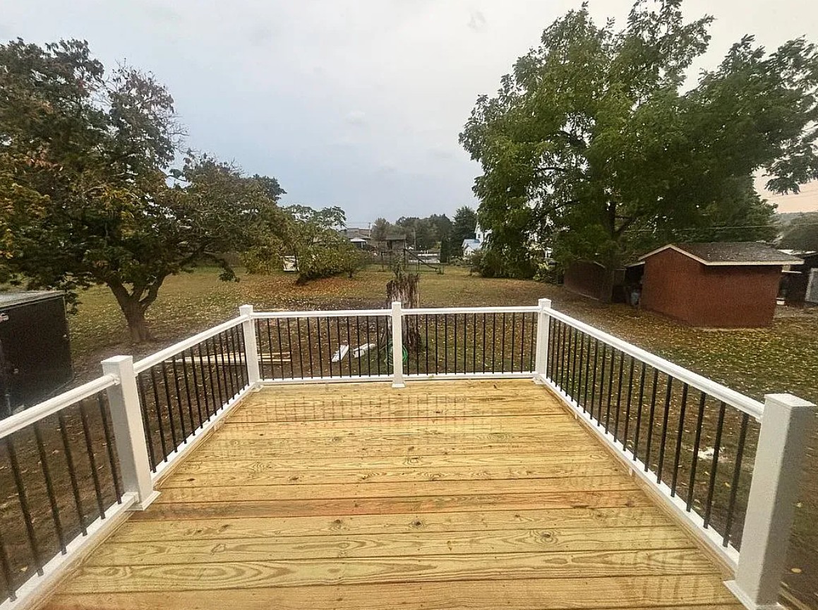 The exterior boasts a level yard perfect for outdoor activities, a brand-new deck off the kitchen for entertaining, and all-new finishes, including the roof.