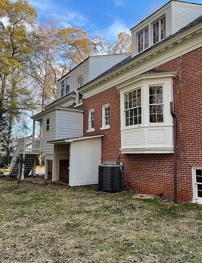 This classic brick home features original heart pine floors, intricate trim details, elegant crown molding, and a lovingly restored library that preserves the home’s rich architectural heritage.