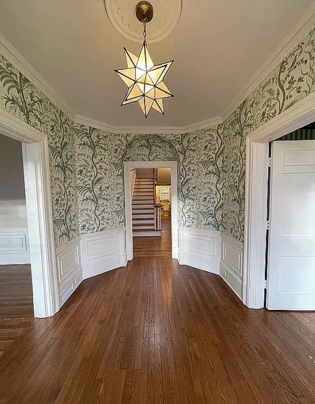 Carefully selected wallpaper adds warmth and character while honoring the home’s period style.