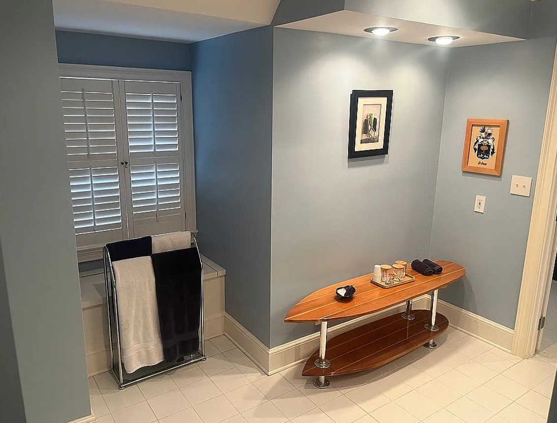 Upstairs, the second master suite includes a large sitting area plus an office or exercise room.
