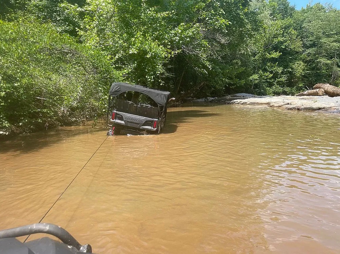 The expansive land features a grassy mountain side, wooded trails, and muddy areas ideal for ATV or quad riding, making it a great fit for outdoorsmen and adventure seekers.