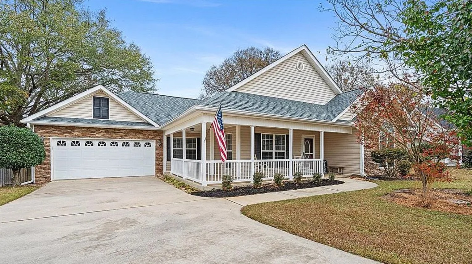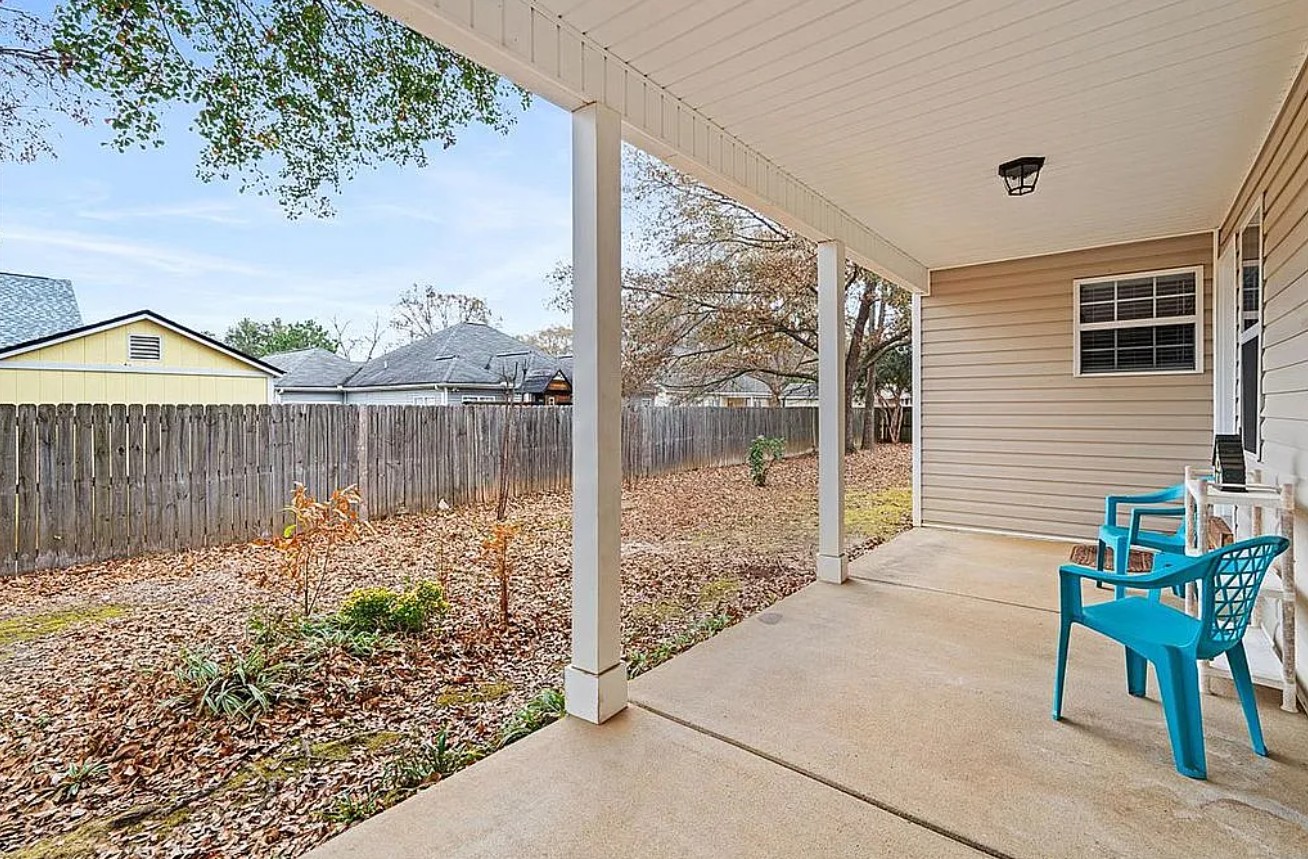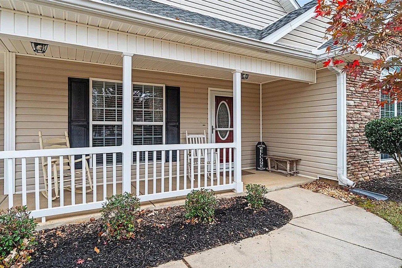 This charming home sits on a quiet cul de sac and features a wrap-around porch, perfect for rocking chairs and relaxing outdoors while enjoying the friendly neighborhood atmosphere.