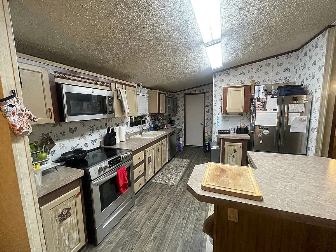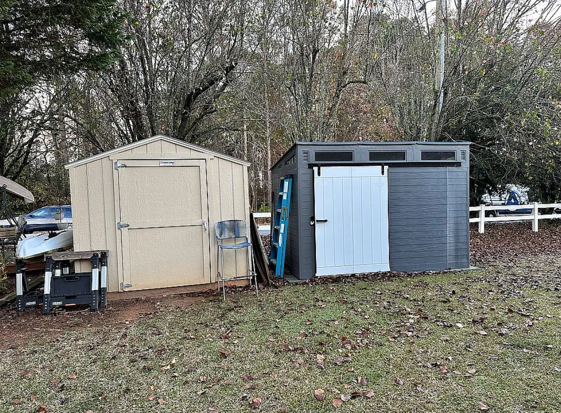 All appliances are included, including the washer and dryer, along with two storage buildings for added convenience.