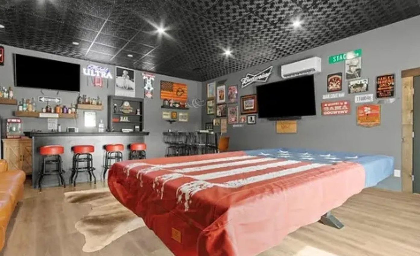 Inside the shop is a man cave with a half bath, dog washing station, and a 4x8 storm room, adding both comfort and functionality.