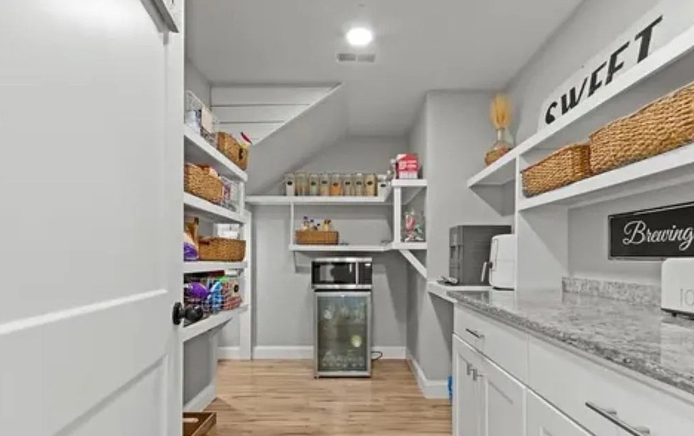 A stunning black walnut staircase leads upstairs to a loft overlooking the living space, along with two oversized bedrooms, large walk in closets, and a modified Jack and Jill bathroom.