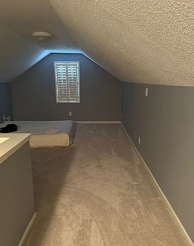 Unfinished walk-out basement with large storage area and separate room for workspace
