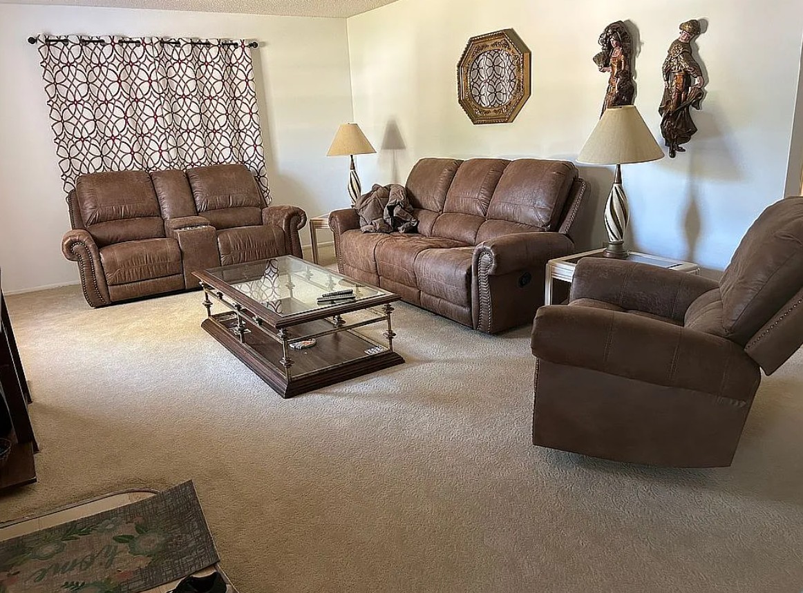 Inside, the home offers large closets, a king-size bed in the primary bedroom, and new living room furniture, making it truly turnkey.