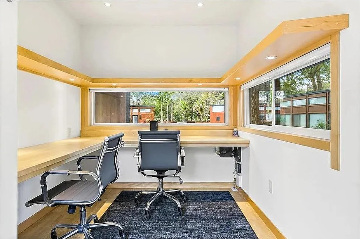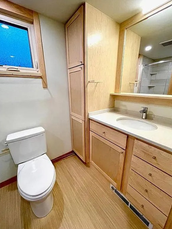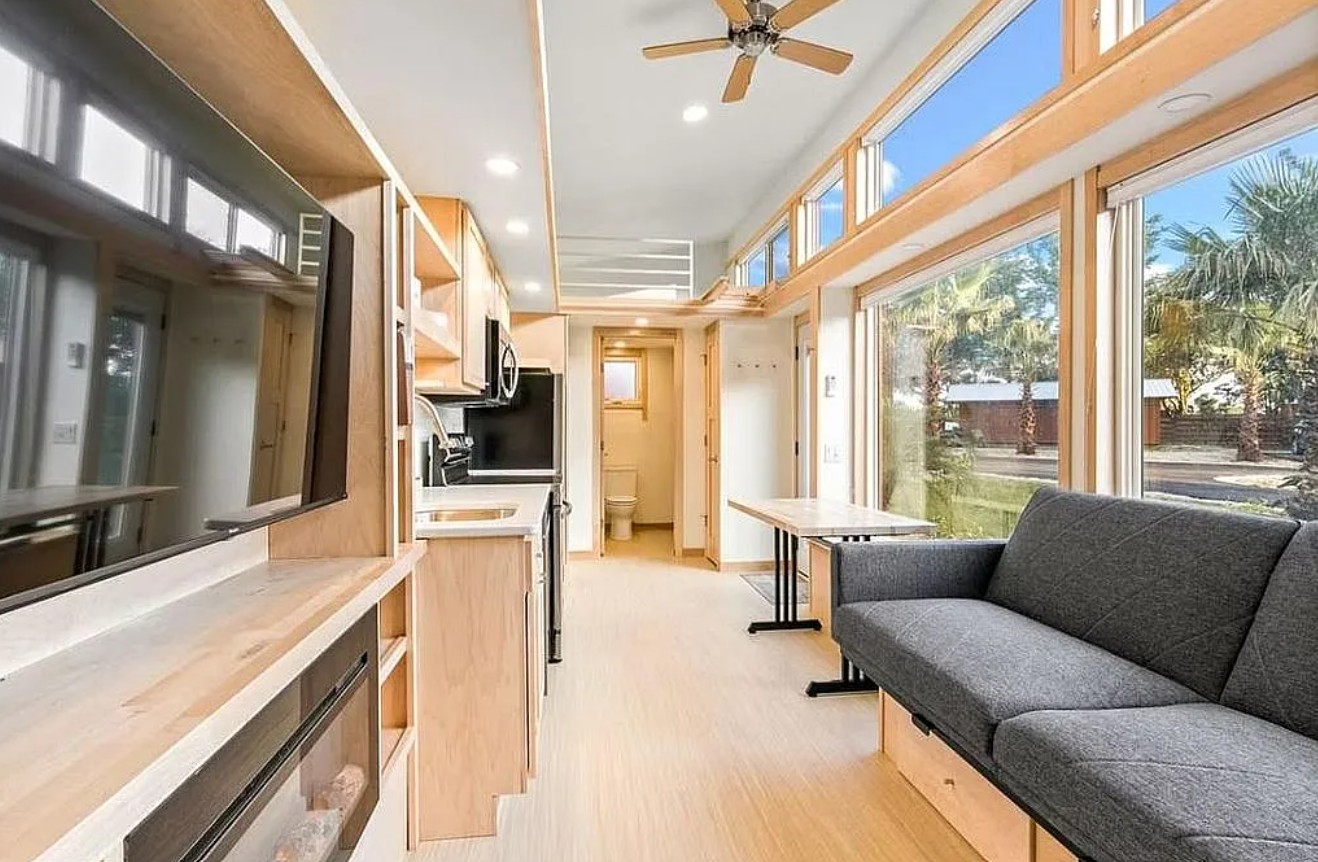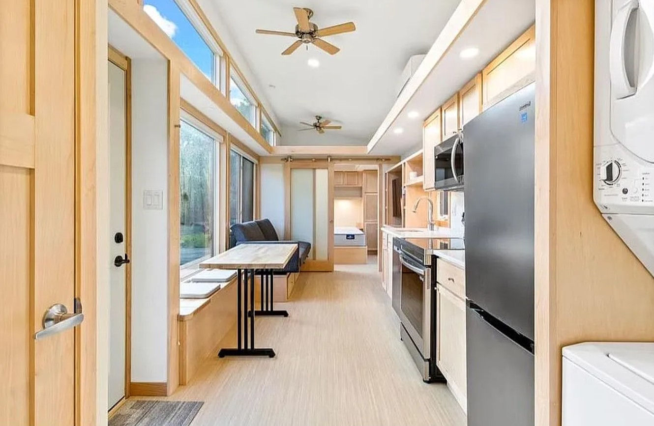 This Traveler XLS Wide model delivers a truly unique living experience with its wider design, soaring ceilings, clerestory windows, and abundant natural light, creating an open and spacious feel rarely found in a tiny home.