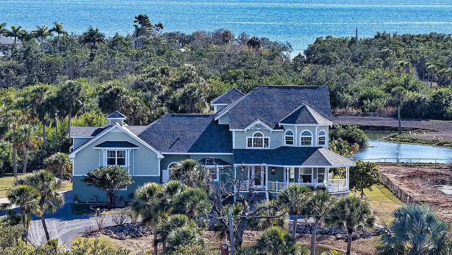The home offers 4,055 square feet of air-conditioned living space and 5,332 square feet of wraparound porches, screened lanai, and three open-air decks, creating unparalleled indoor-outdoor living.