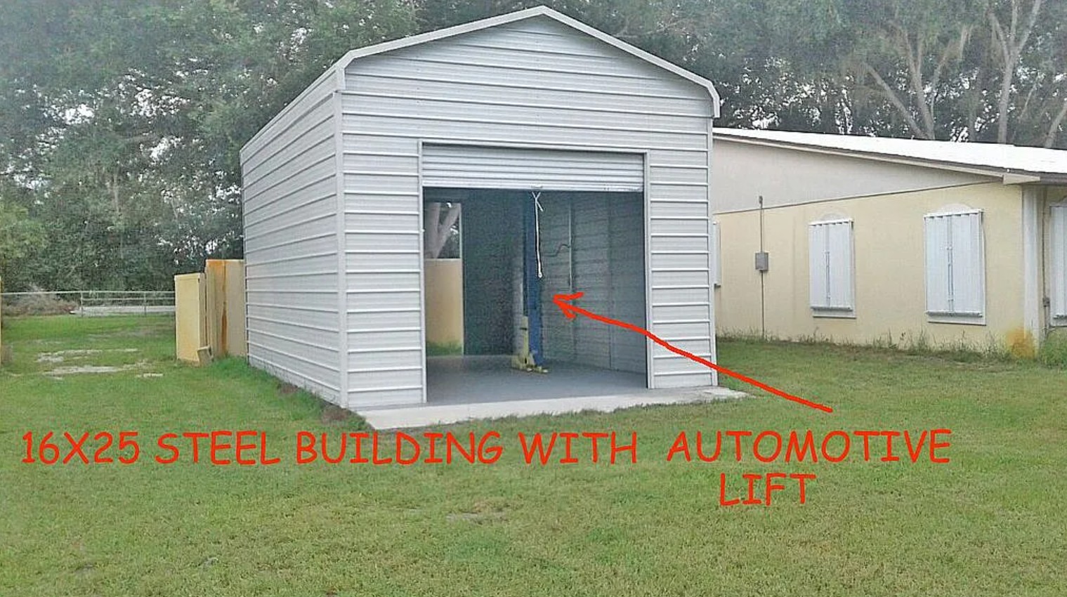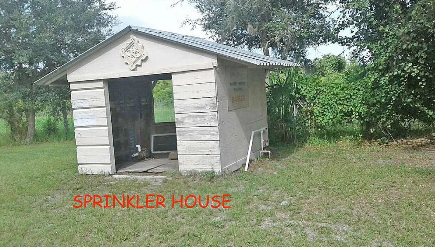 Exterior features include seamless gutters, a front carport, fenced front yard with gate, sprinkler system, multiple storage sheds, a pump house with new roof, and a well equipped automotive lift and workshop setup.