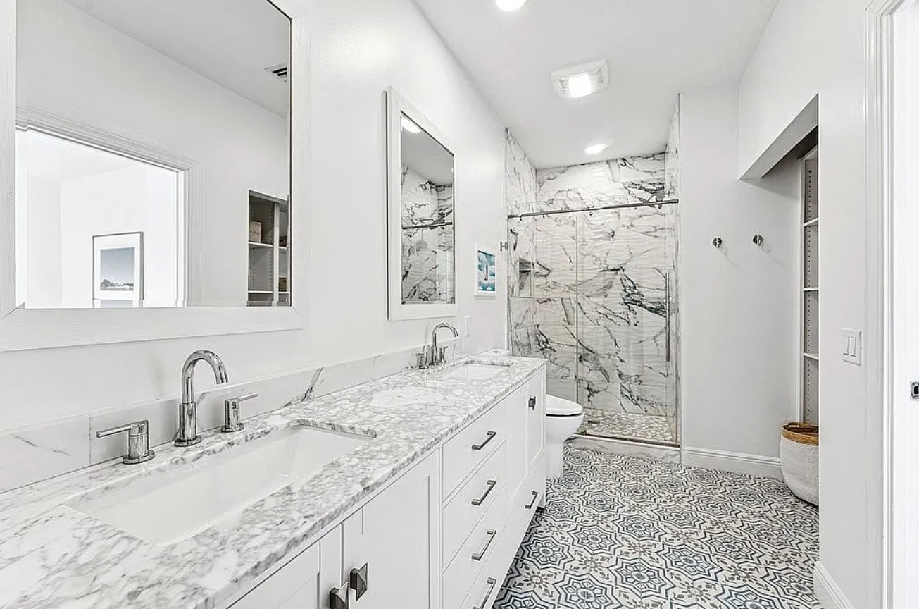 All bathrooms have been completely remodeled, creating a fresh, cohesive, and refined living space.