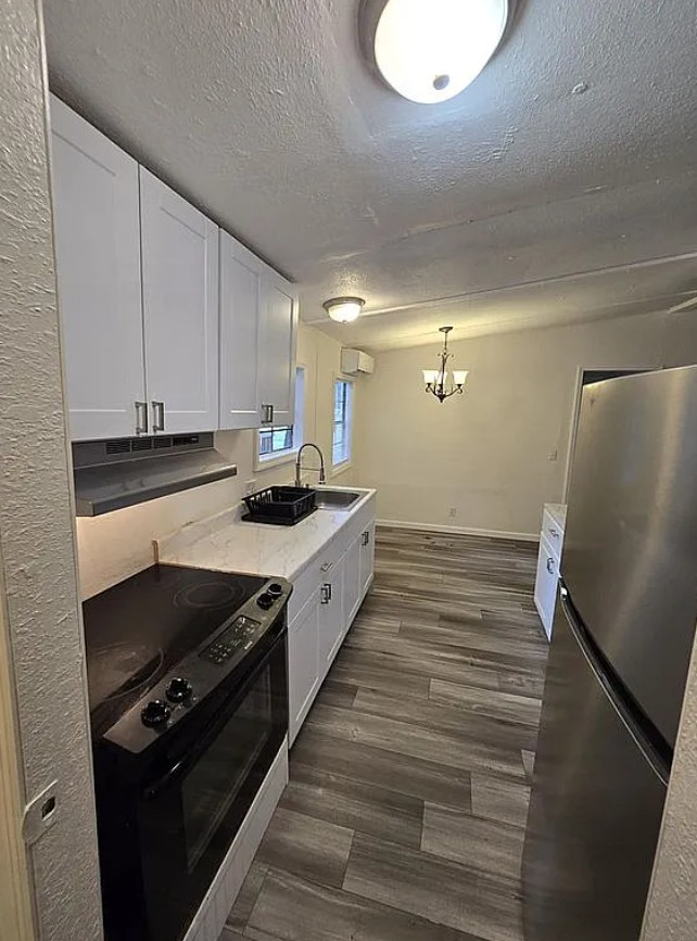 The kitchen has been completely refreshed with new cabinets that provide ample storage and a clean, updated design ideal for everyday living.