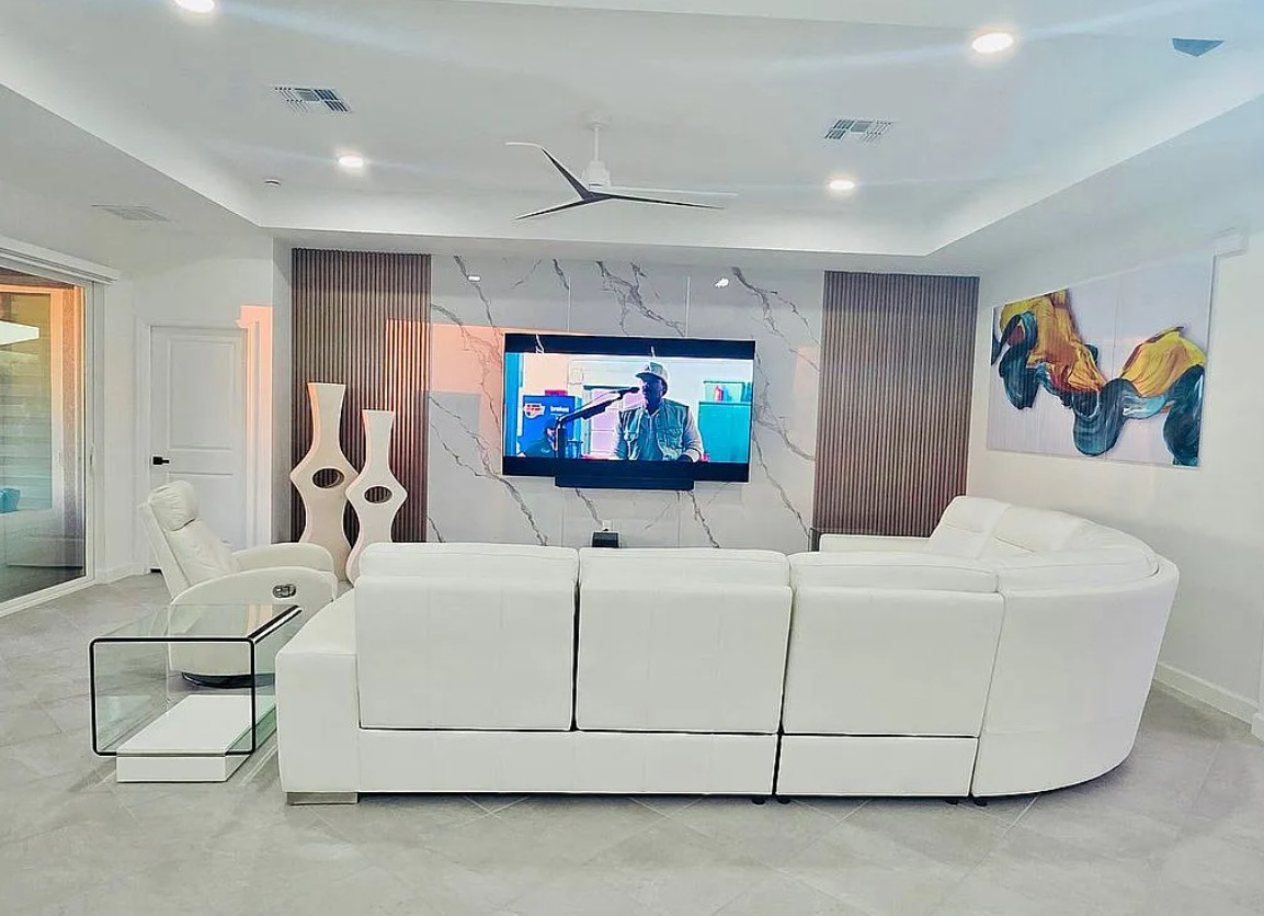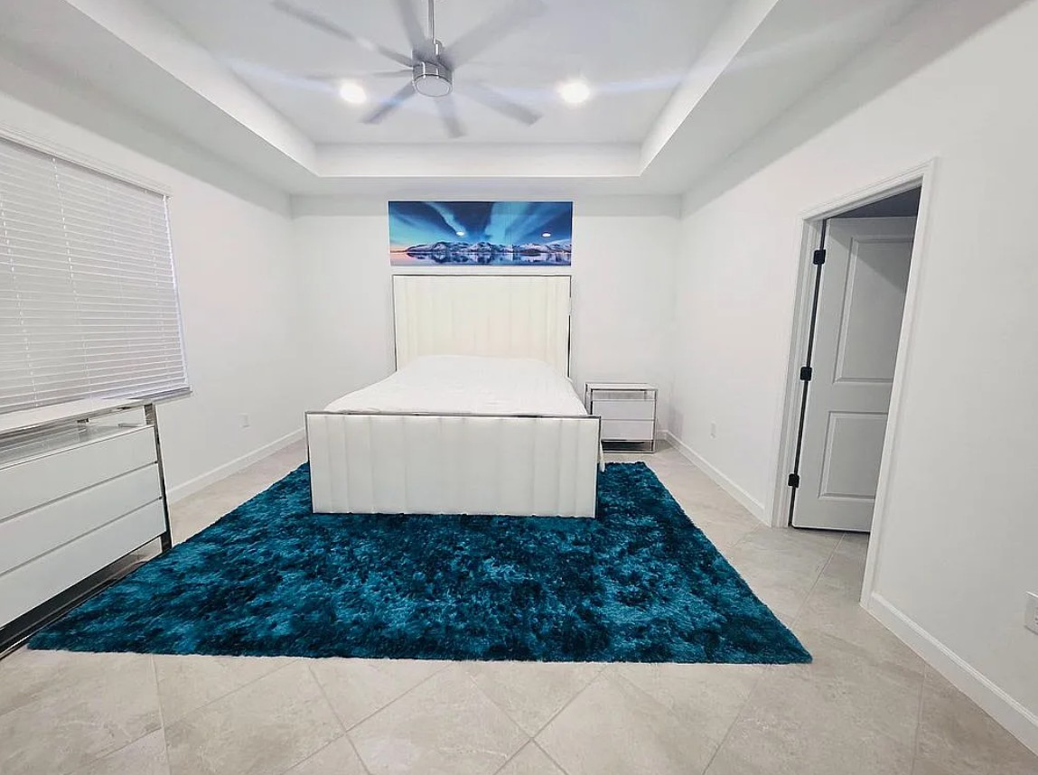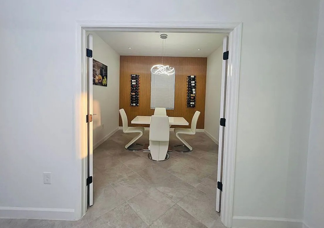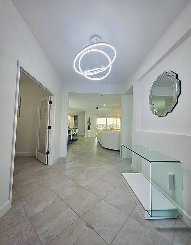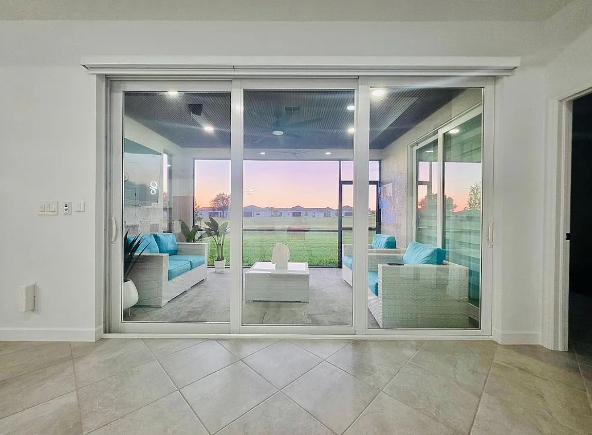 The home is equipped with hurricane impact windows and sliding glass doors, with motorized blinds controlled at the touch of a button—no cords, making it safer for children and pets.