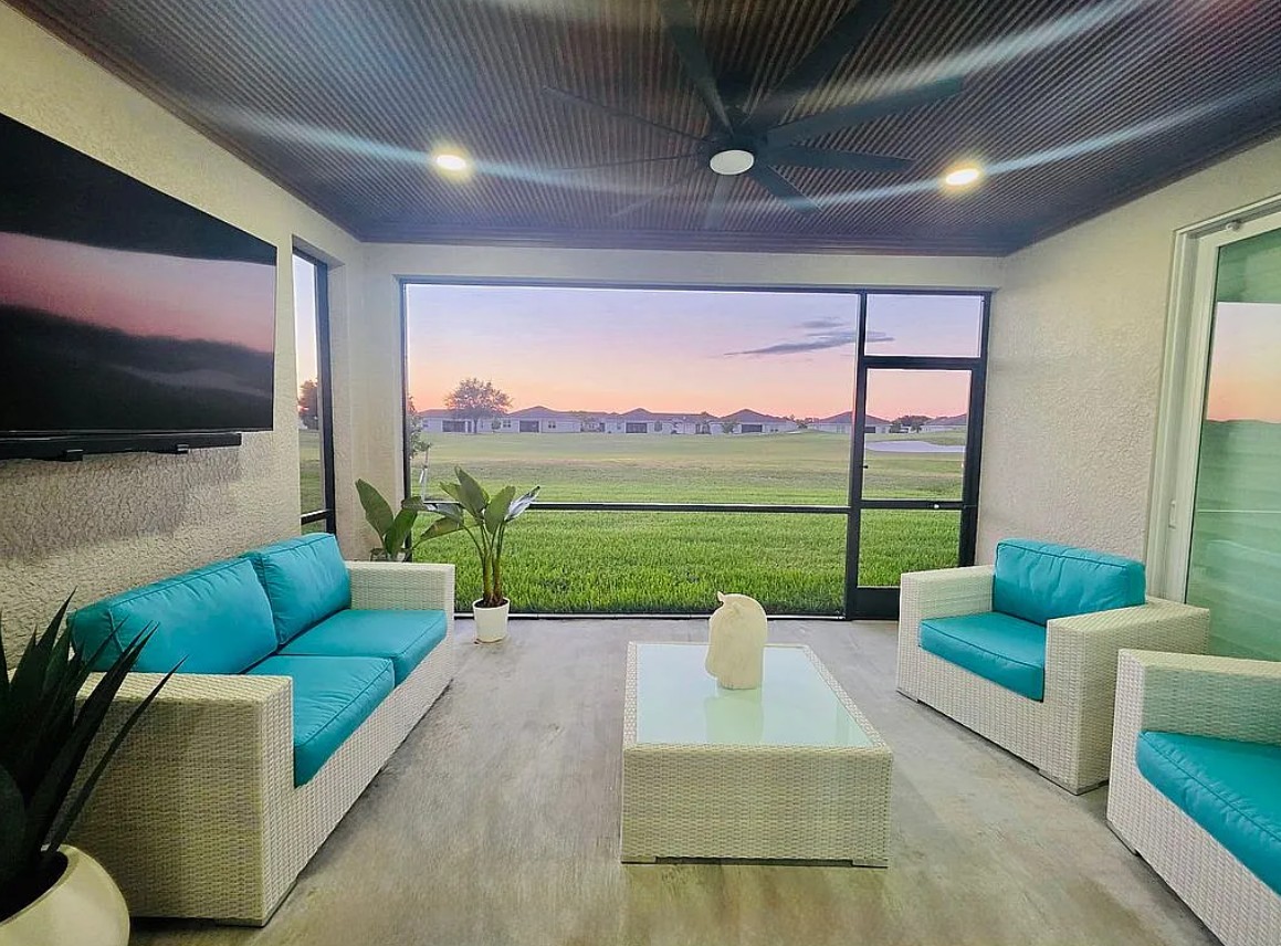 Enjoy sweeping views of the golf course and unforgettable sunset views directly from your living room, creating a serene and upscale Florida lifestyle.