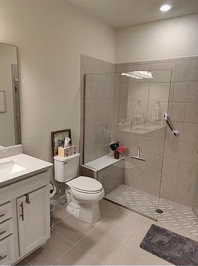 The oversized primary suite includes dual vanities and a beautiful tile shower with frameless glass door.