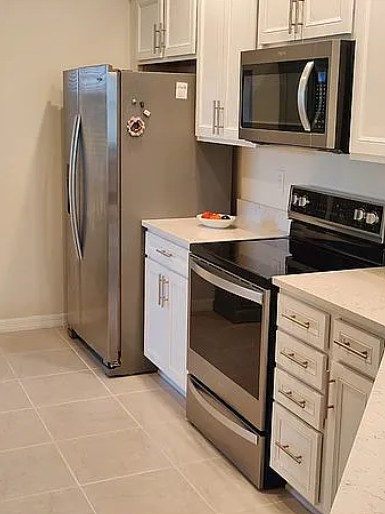 Both the primary and guest bathrooms feature quartz countertops and upgraded cabinets.