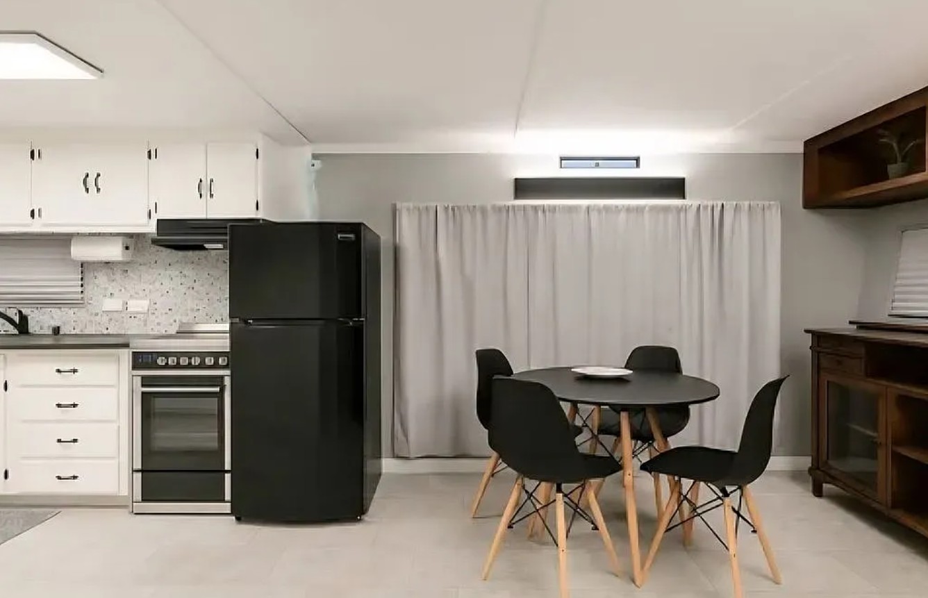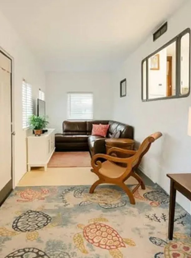 Inside, the 578-square-foot living space features all new plumbing and fixtures, additional electrical outlets, LED lighting, LifeProof luxury vinyl plank flooring, and brand-new appliances.