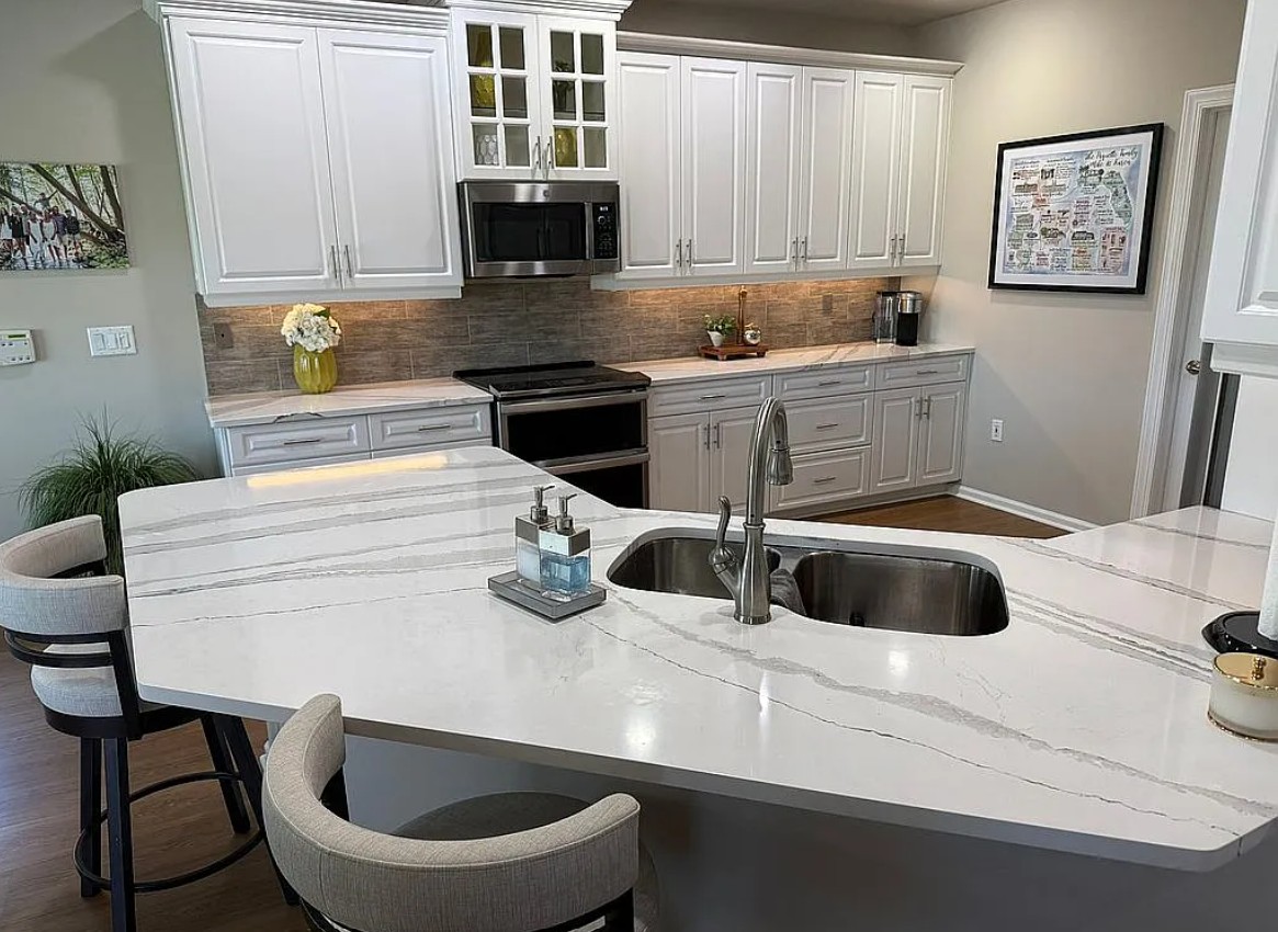 Inside, the home features Cambria countertops in the kitchen, two walk-in closets in the master suite, and built-in storage with epoxy flooring in the garage.