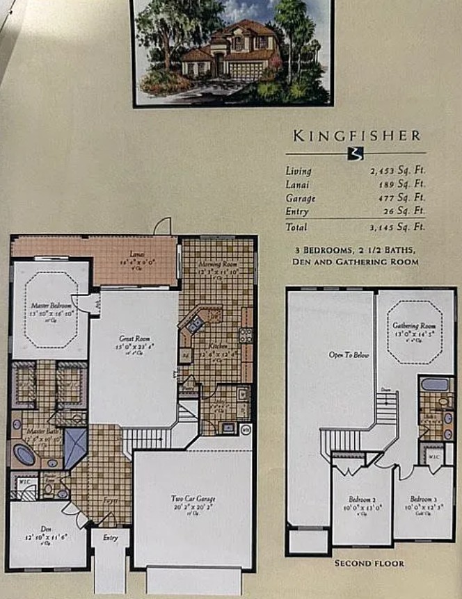 This Kingfisher model in Laurel Meadow Community offers 2,496 sq ft of living space (3,145 total sq ft) and features a large first-floor office with closet and two air conditioning systems for comfort throughout the year.