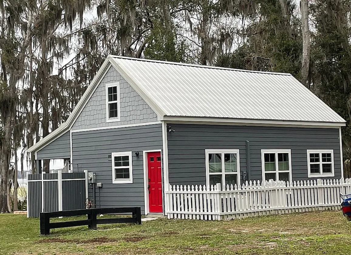 The grey house has a strong rental history at approximately $2,400 per month and is currently listed for monthly rental.