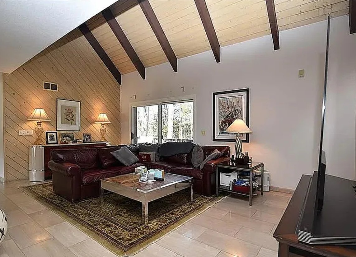 This open layout continues into the rear family room, offering a warm and inviting space with vaulted ceilings, a fireplace, and additional sliding doors leading to the rear deck.