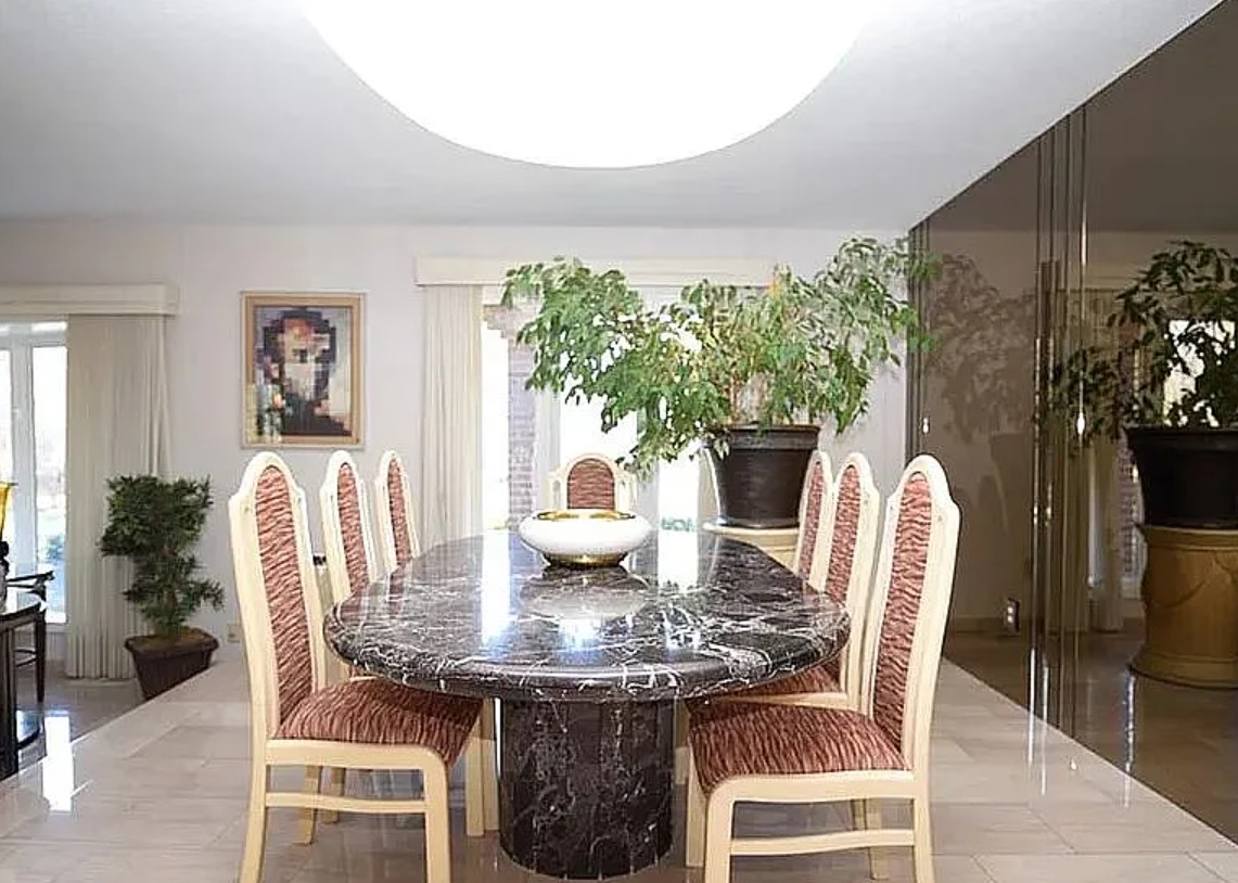 Marble floors flow throughout much of the main level, creating a refined and timeless atmosphere.