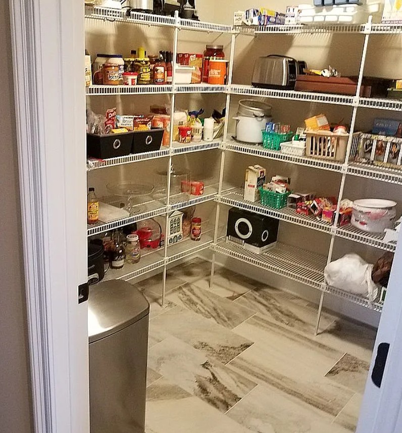 Tile flooring accents the bathrooms, laundry room, and pantry for durability and easy maintenance.
