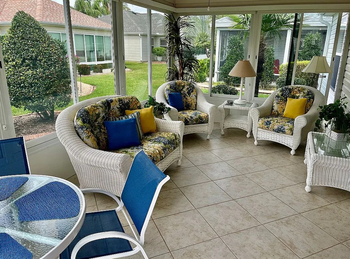 Fully furnished and turnkey, this charming 3 bedroom Wisteria Designer home, known as the Cozy Cottage, is located in the heart of The Villages, FL, one of the most sought-after 55+ communities.