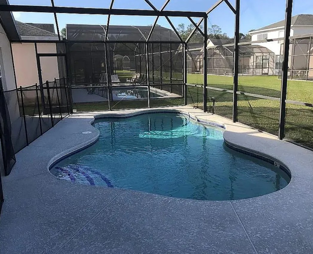 The property offers a private pool with an extended pool deck area, ideal for relaxing, entertaining, and enjoying Florida’s sunshine.
