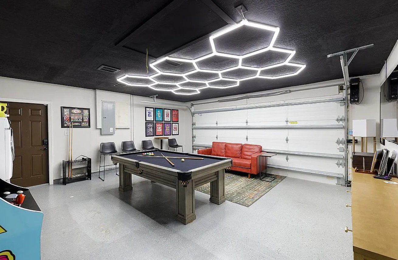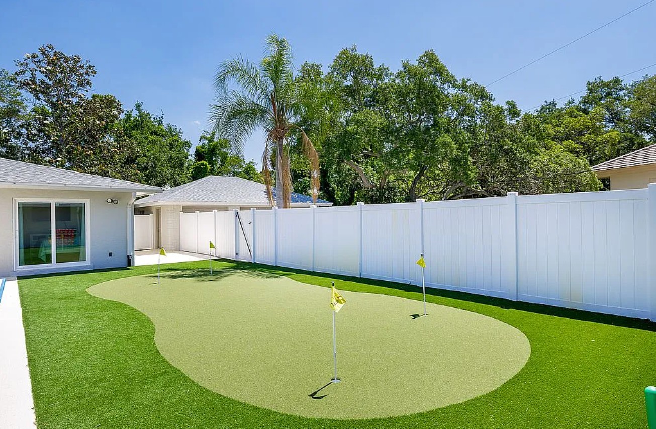 Designed for entertainment and relaxation, the property includes a heated pool, professional putting green, and a garage game room.