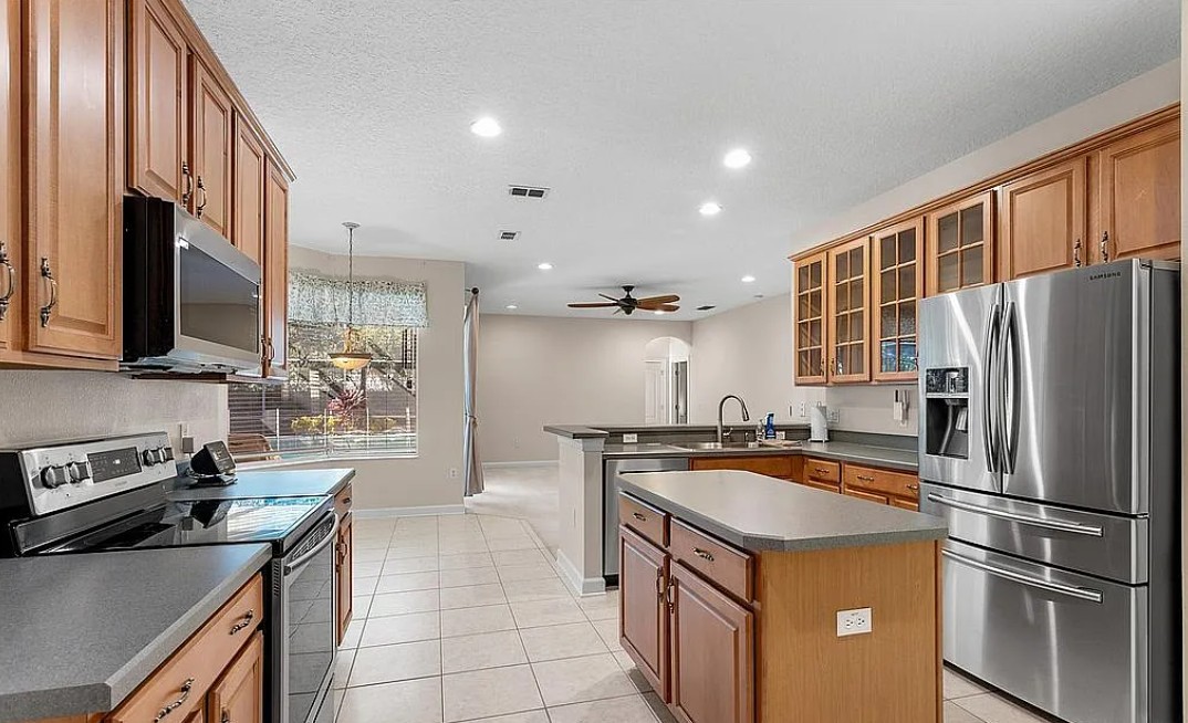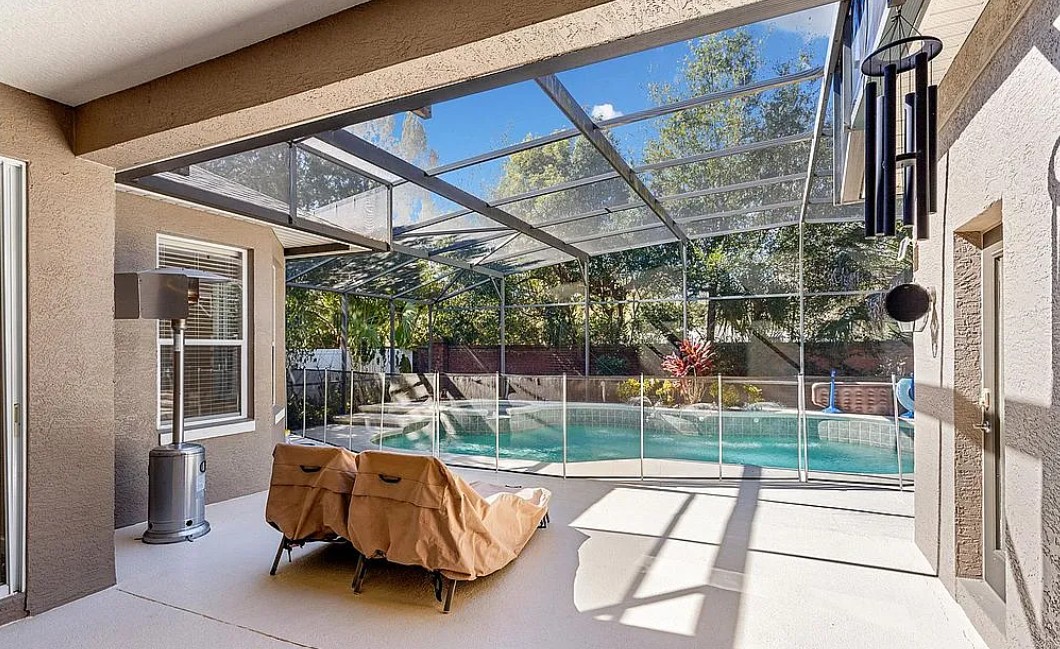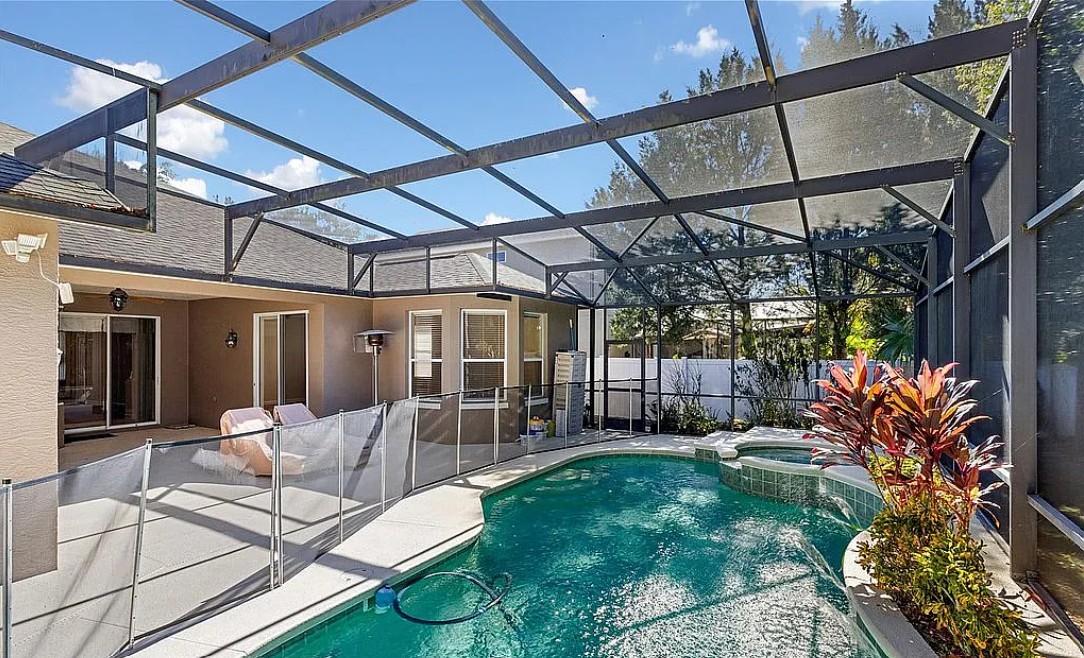 This Oviedo home for sale by owner includes major updates that provide peace of mind, such as a newer roof, new water heater, new main A/C unit, new pool and spa heater, and newer stainless steel appliances.