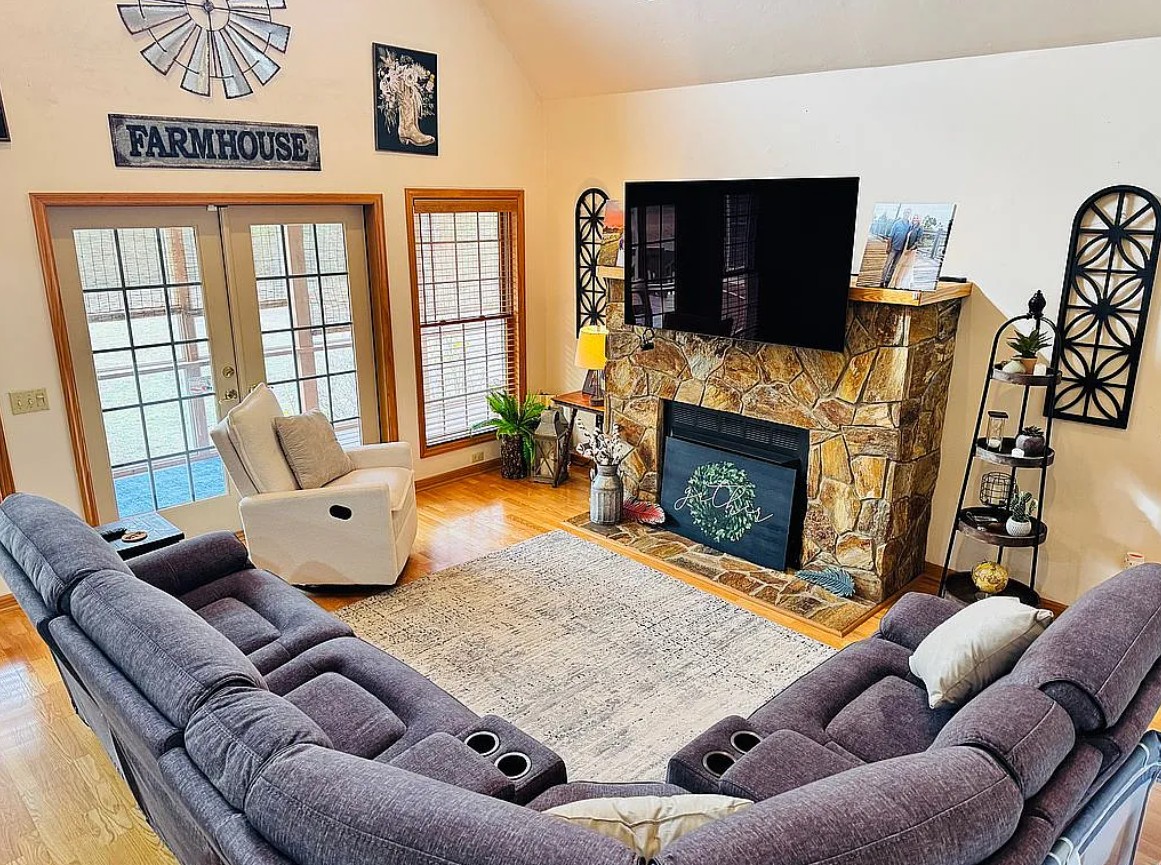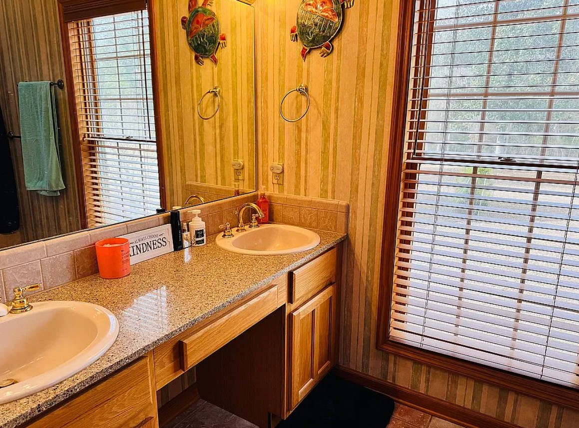 Major upgrades include two heat pump HVAC systems, a Cummins whole-house generator capable of powering the home for up to seven days with support from two 250 gallon propane tanks, a standing seam metal roof, a 2024 water filtration system, and private well and septic.