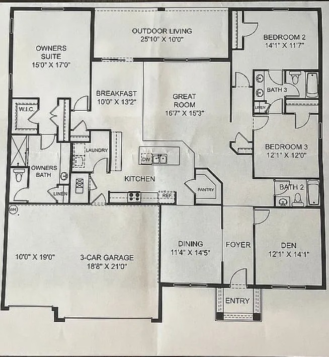 The thoughtfully designed split floor plan continues into a large great room, where two additional bedrooms share a well-appointed Jack and Jill bathroom complete with a linen closet and separate toilet and shower area.