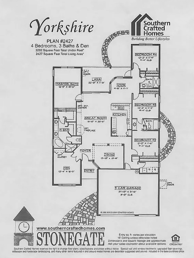 This meticulously designed Southern Crafted home offers over 2,400 sq ft of elegant living space, a spacious three car garage, and a private, fully screened brick paver lanai with a custom-built in-ground spa.