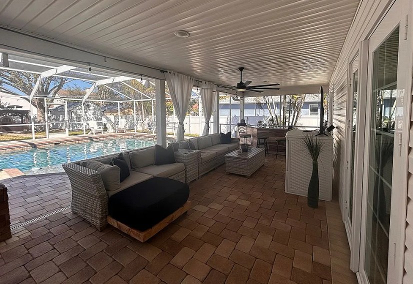 Convenient to Gulf beaches, Tampa International Airport, Downtown Tampa, Clearwater, and Saint Petersburg, this Oldsmar pool home delivers luxury, comfort, and exceptional outdoor living.