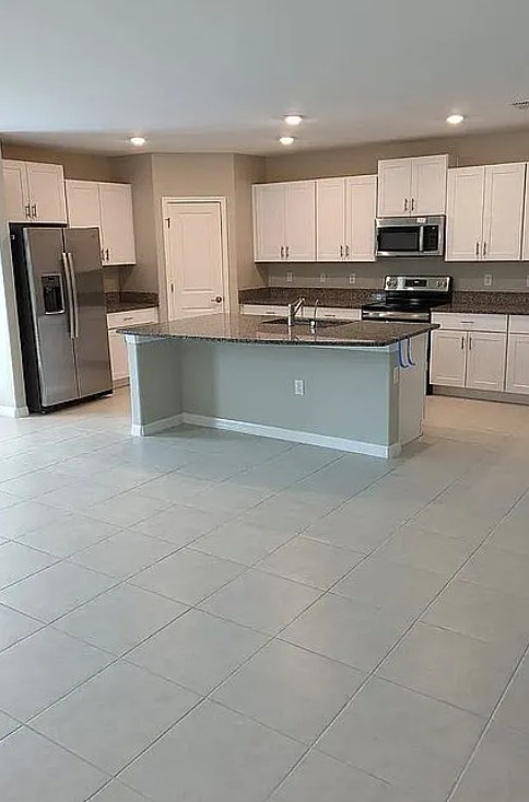 The open-concept layout is perfect for everyday living and entertaining, featuring ceramic tile flooring throughout the first floor and a stylish kitchen with stainless steel appliances.