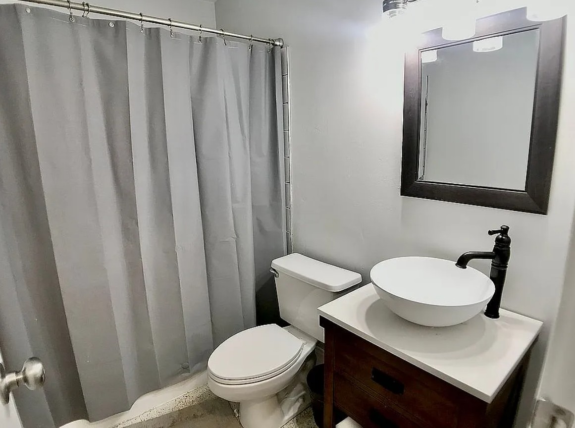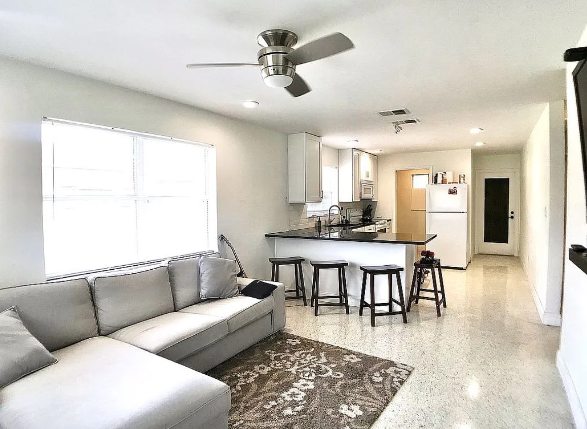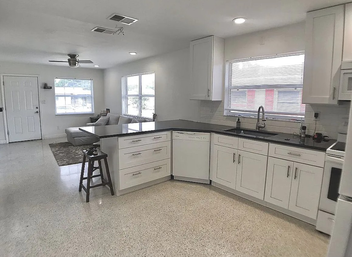 This solid block home features a fully renovated interior filled with natural light and a bright, open layout designed for modern living.