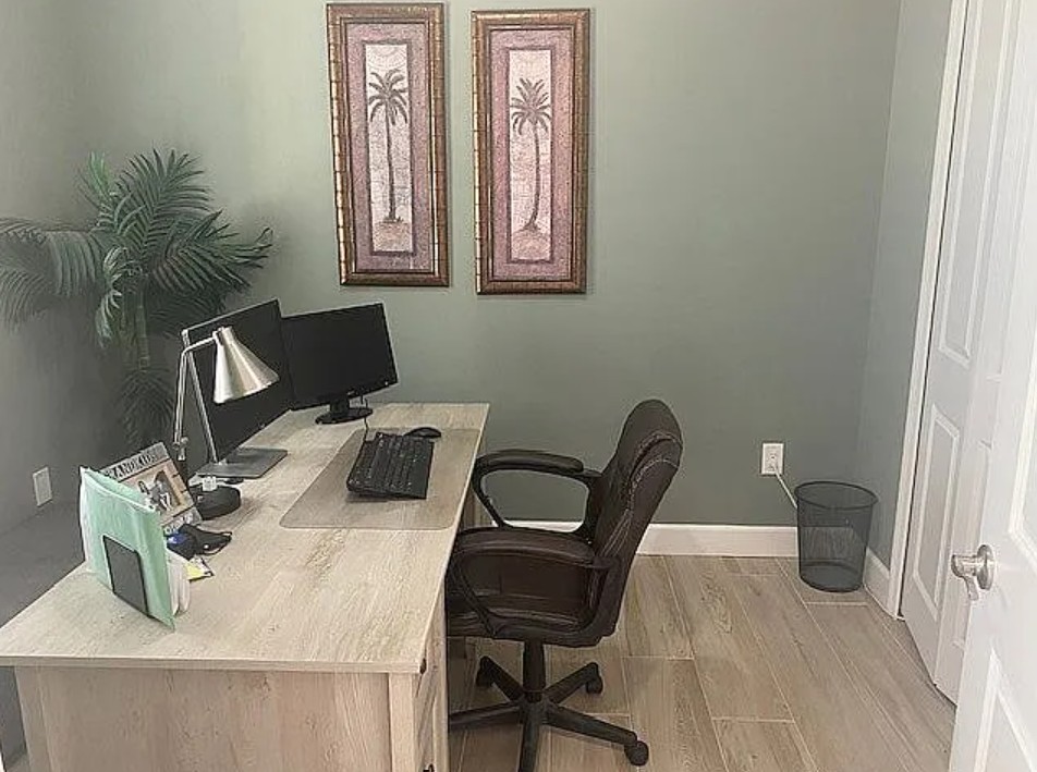 A dedicated home office provides flexible space for remote work or study.