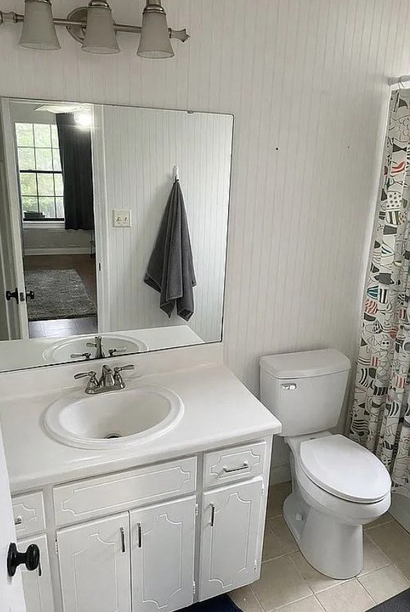 The primary suite includes a private full bathroom, while the second bath offers dual sinks with a split vanity layout for added convenience.