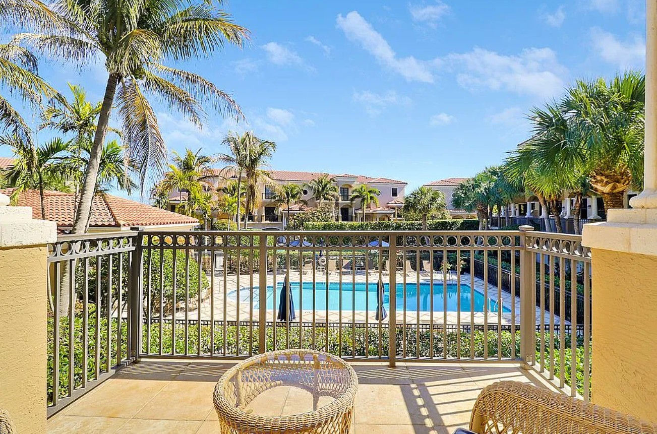Enjoy tranquil views of the heated pool, spa, clubhouse, lush tropical landscaping, and partial water views of the Atlantic Ocean and Intracoastal Waterway.
