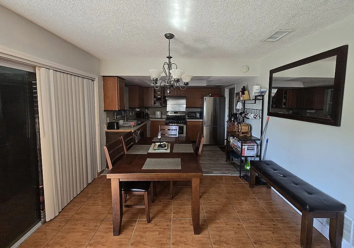 This well-maintained home features tile flooring throughout, creating a clean, low-maintenance living space. The kitchen includes a gas stove and newer appliances, including a dishwasher, washer, and dryer (approximately 1 year old).