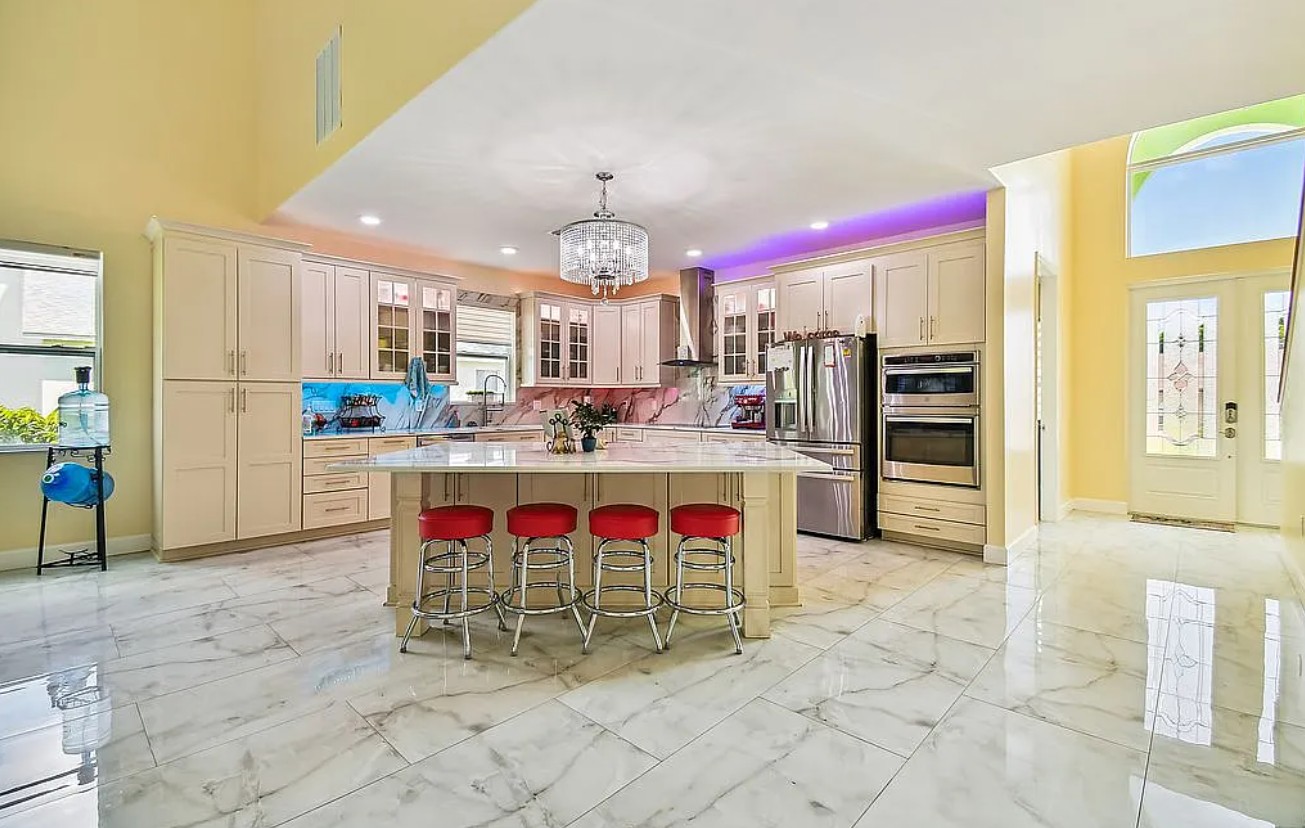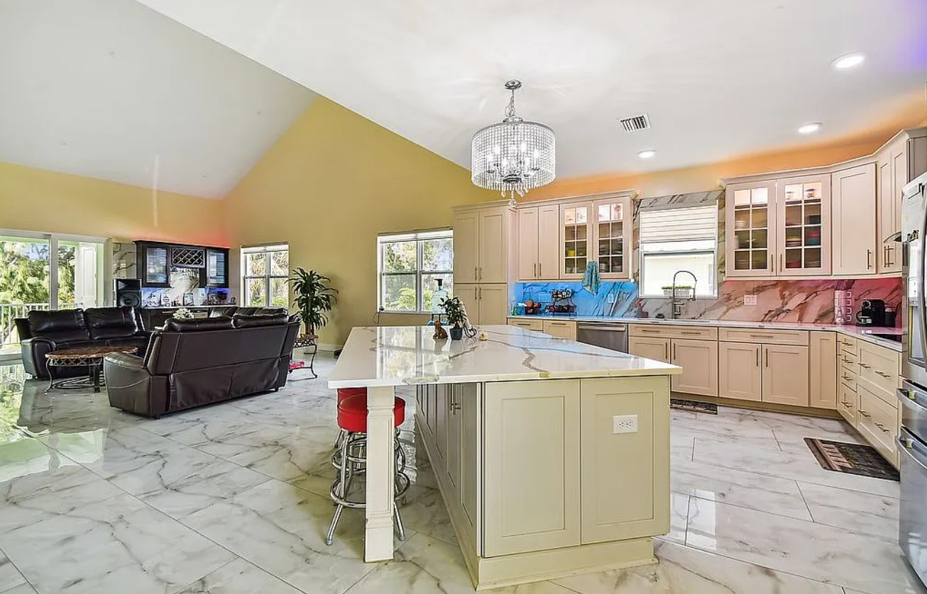Stunning 5 bedroom, 4 1/2 bathroom home in Apollo Beach, FL, featuring 4,266 sq ft of living space and 5,651 sq ft under roof, built 2 feet above flood elevation for peace of mind. This property includes a private mother-in-law suite with its own kitchen, living area, bedroom, walk-in closet, freestanding tub, shower, full master bathroom, and separate AC unit.
