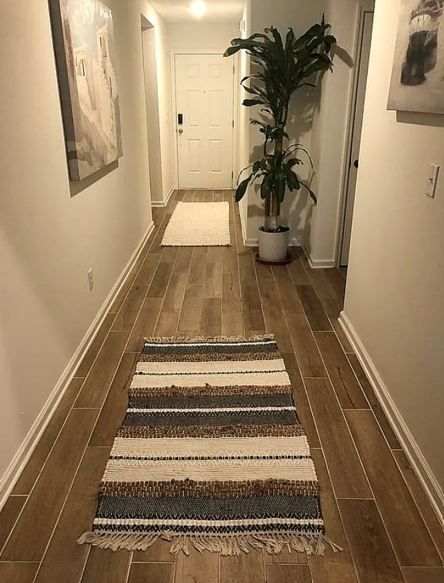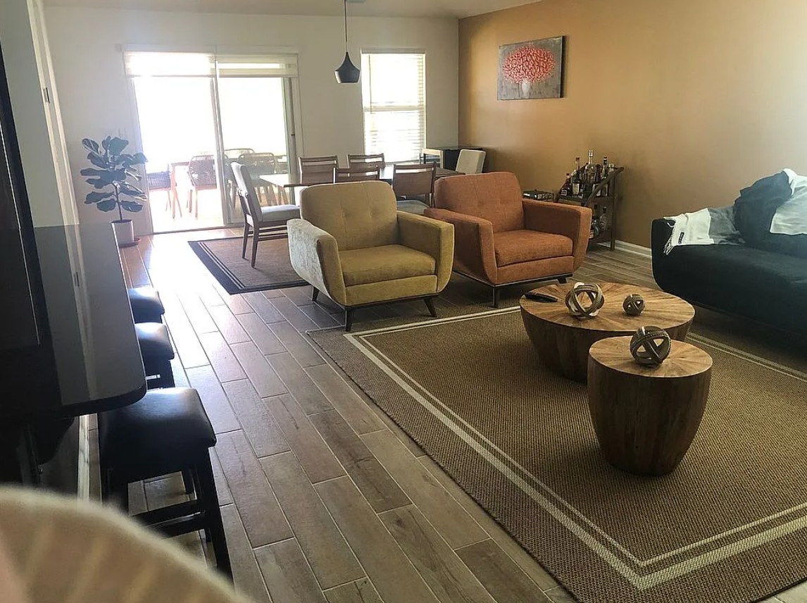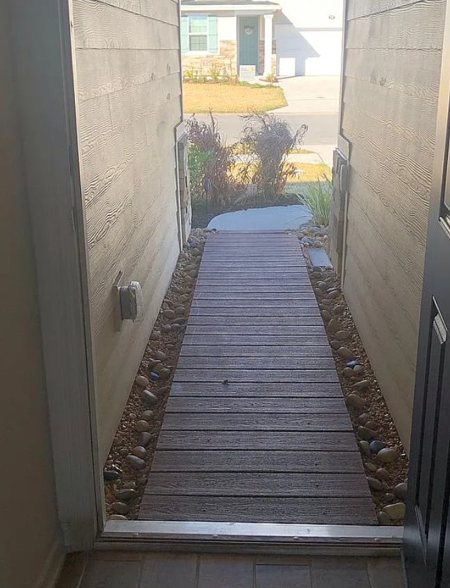 The home boasts uniform porcelain flooring throughout, elegant exterior wooden walkway over river stones, and a beautiful patio perfect for relaxing or entertaining.