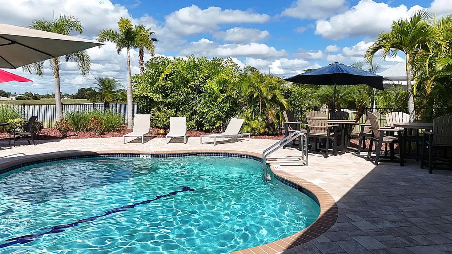 Residents of Thornton Creek Motorcoach Resort enjoy a gated Class A community with only 99 deeded lots across 58 acres, including heated pool, clubhouse with weekly events, fitness center, pickleball courts, horseshoe pits, fenced dog parks, and proximity to Paradise Golf Course and a public boat launch leading to Charlotte Harbor.