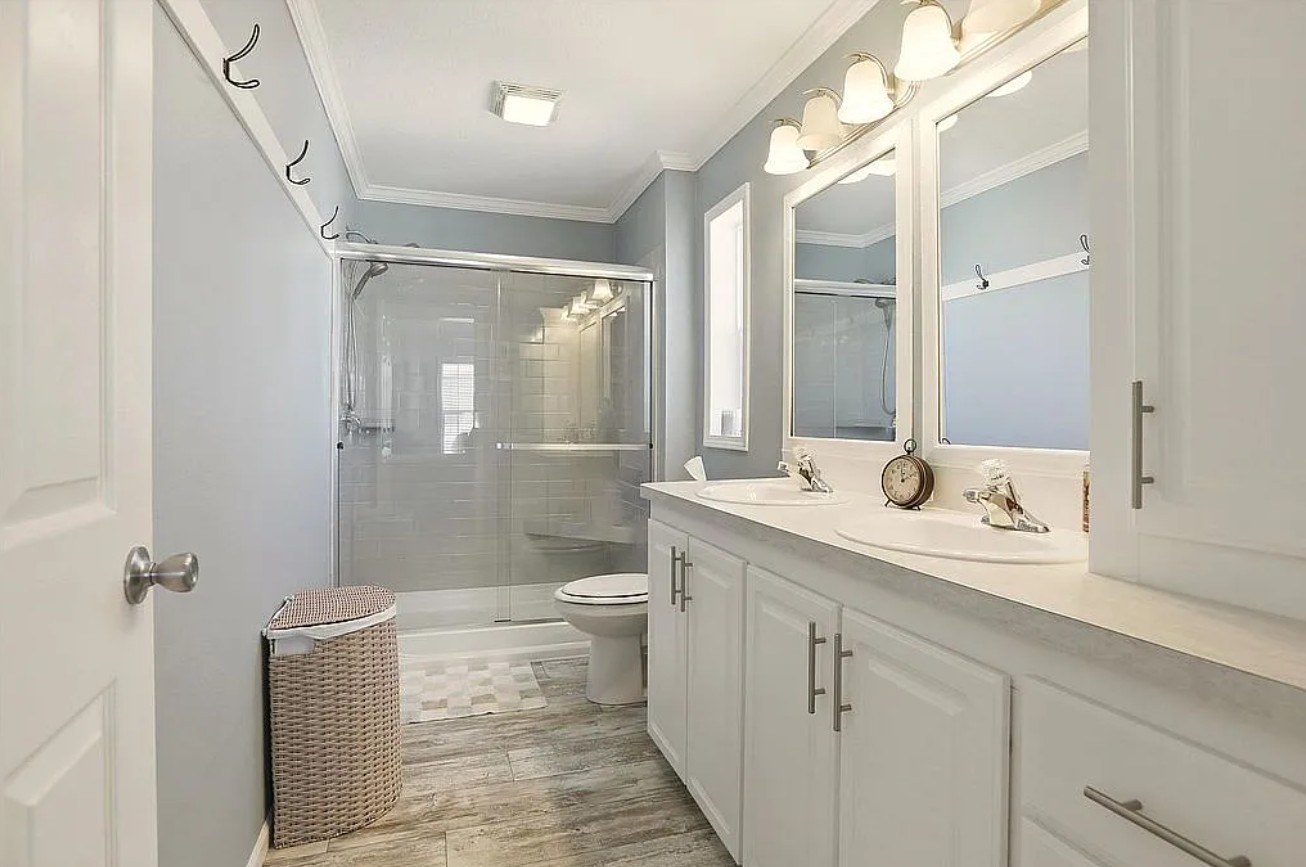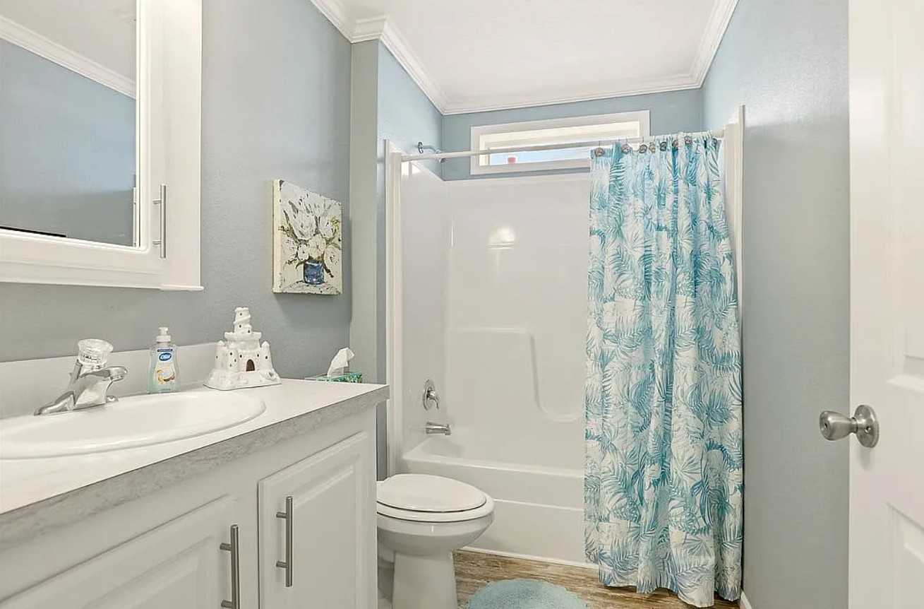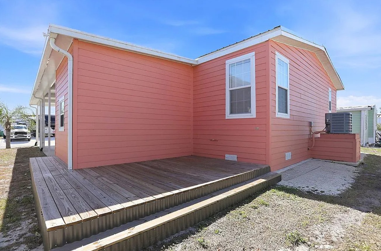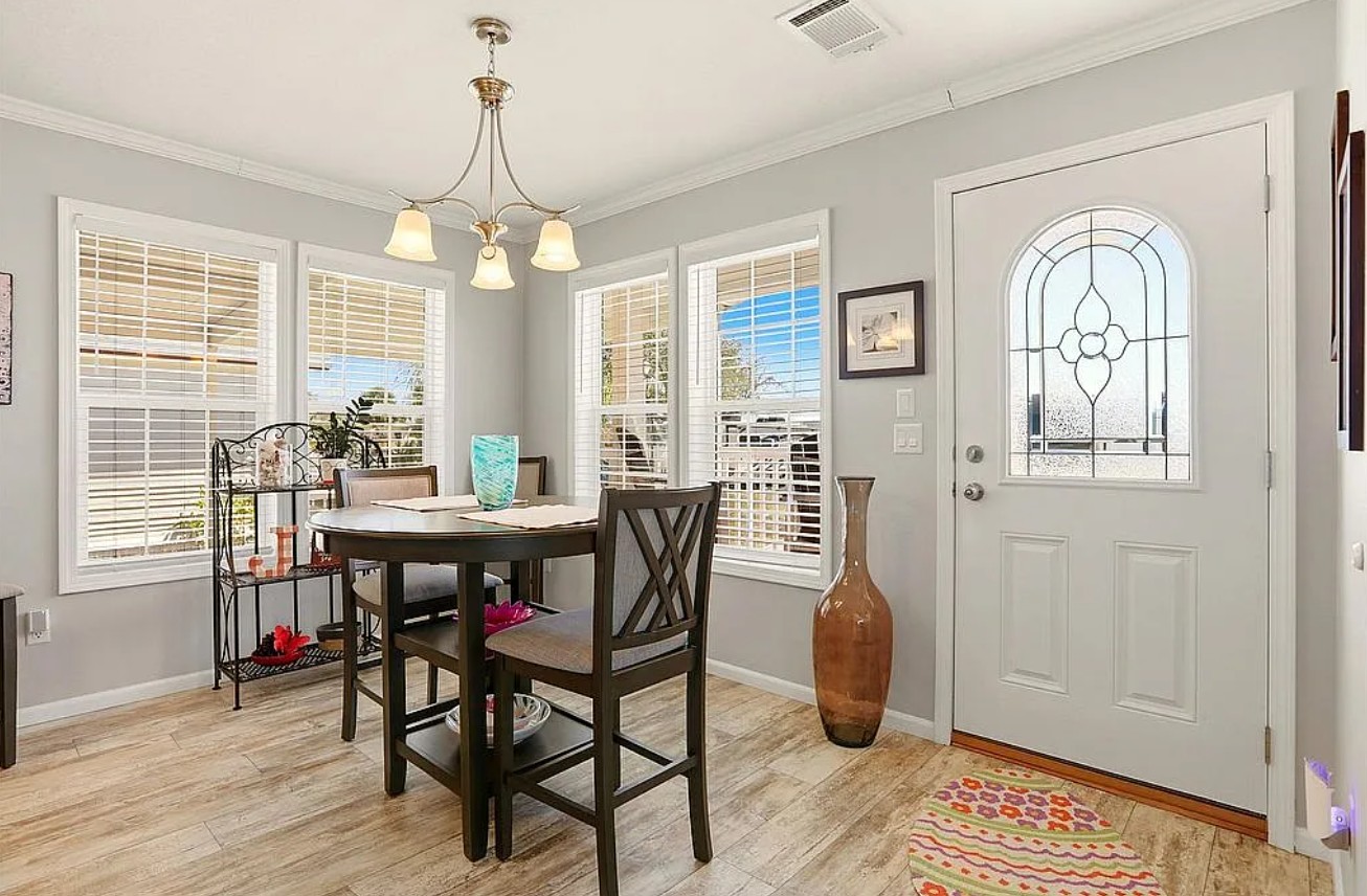 Experience coastal Florida living in this 2023 Jacobson double-wide home located in the desirable Harbor View on The Bay 55+ community. Offering 1,568 sq ft, this 3 bedroom, 2 bathroom home features elegant crown molding, stainless steel appliances, center kitchen island with bar seating, and an inside laundry room for added convenience.