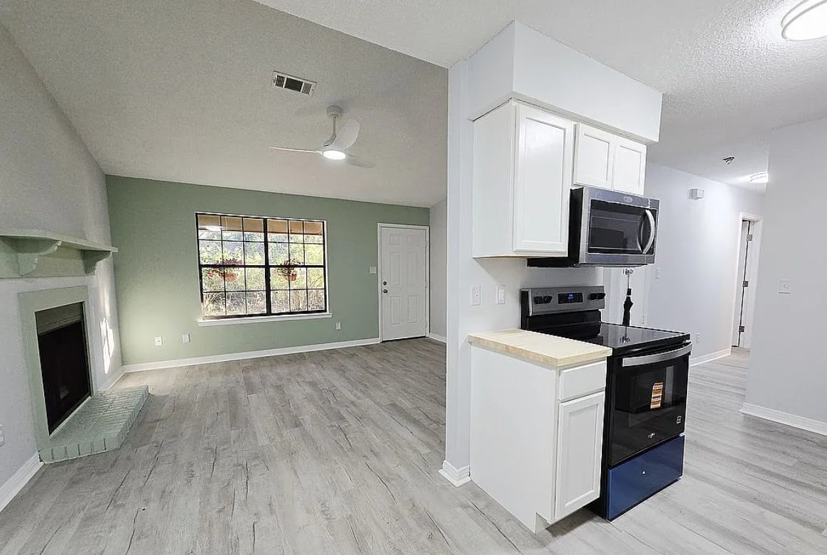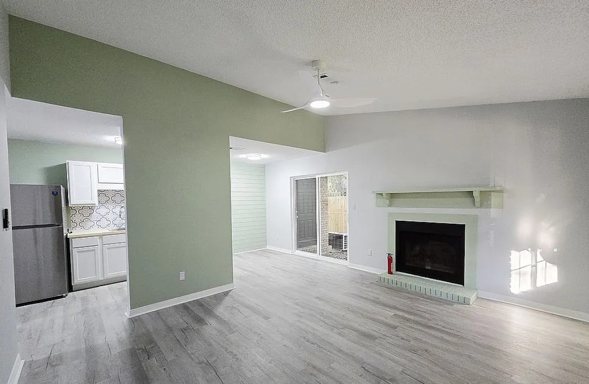 This completely renovated 2 bedroom, 2 bath townhouse in the Northwood subdivision of Pensacola, FL, combines cozy comfort with modern style. Featuring a cozy fireplace, luxury vinyl plank flooring throughout, and a bright, light filled kitchen with brand-new appliances, this home is move-in ready. The updated bathrooms include new vanities and toilets, while brand-new HVAC, water heater, and smart ceiling fans ensure comfort year-round. The private patio garden and lush green lawn create a serene outdoor retreat, complete with a brand-new privacy fence and mature oak trees providing shade during the summer months. Sliding doors in the dining area open to the patio, creating a seamless indoor/outdoor living space perfect for entertaining or relaxing. Parking is available for two cars, and the home’s location offers the ideal balance of privacy and convenience just one minute from 9 Mile Road, near the new Costco, shopping, and restaurants, yet tucked away in a peaceful, greenery filled neighborhood. The HOA covers water, sewer, garbage, basic cable, exterior building insurance (from the sheetrock out), and lawn care for common areas, providing low maintenance living. With a new roof installed in 2023 and connections to public water and sewer, this townhouse is hassle-free and ready to call home. No agents, please.