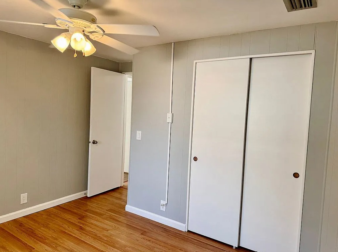 MOTIVATED SELLER! This beautiful 2 bedroom, 2 bath house in Micco, FL, offers a bright, open floor plan with wood laminate flooring throughout no carpet! Both bathrooms are fully tiled with walk in showers and spacious vanities, creating a modern and low-maintenance living space. The kitchen features full-size cabinets with ample storage, while ceiling fans in every room and a reliable AC system ensure year round comfort. Step outside onto the enormous patio and enjoy the breeze off the Indian River, or take advantage of the large outdoor shed for extra storage. The home has a newer roof, a recently replaced carport roof, and a new water heater. Storm panels and shutters are included for added protection.