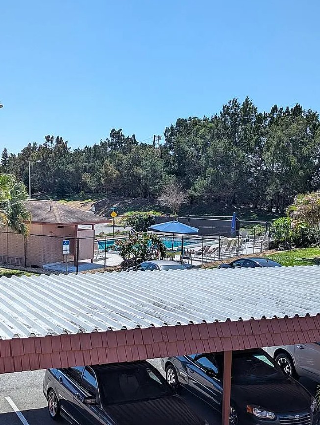 The well-maintained association offers exceptional value with a $465 monthly fee covering water, sewer, trash, lawn care, heated saltwater pool, pest control, reserves, roof, internet, and cable. The roof was replaced just two years ago, and no flood insurance is required. A covered parking space is located directly in front of the unit.