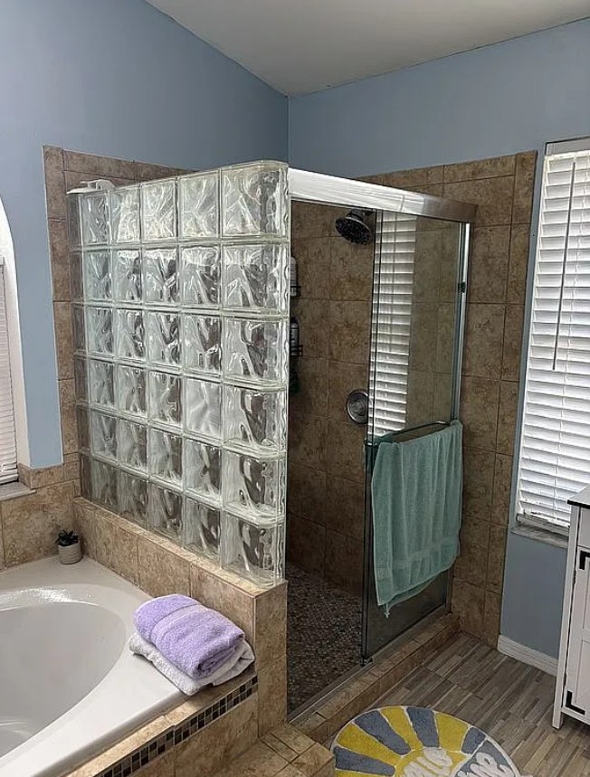 The spacious primary suite includes a private ensuite bathroom with a relaxing soaking tub, separate shower, and dual sinks. Both bathrooms have been upgraded with new vanities and updated flooring for a fresh, contemporary feel.